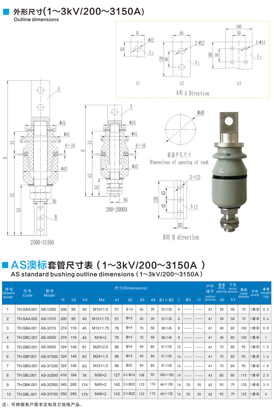AS澳標套管1~3kV/200~3150A