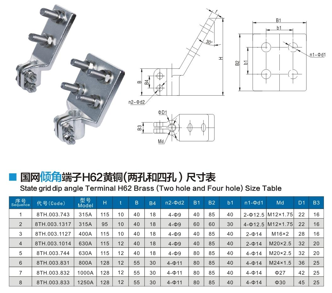 國網(wǎng)傾角端子H62黃銅(兩孔和四孔)