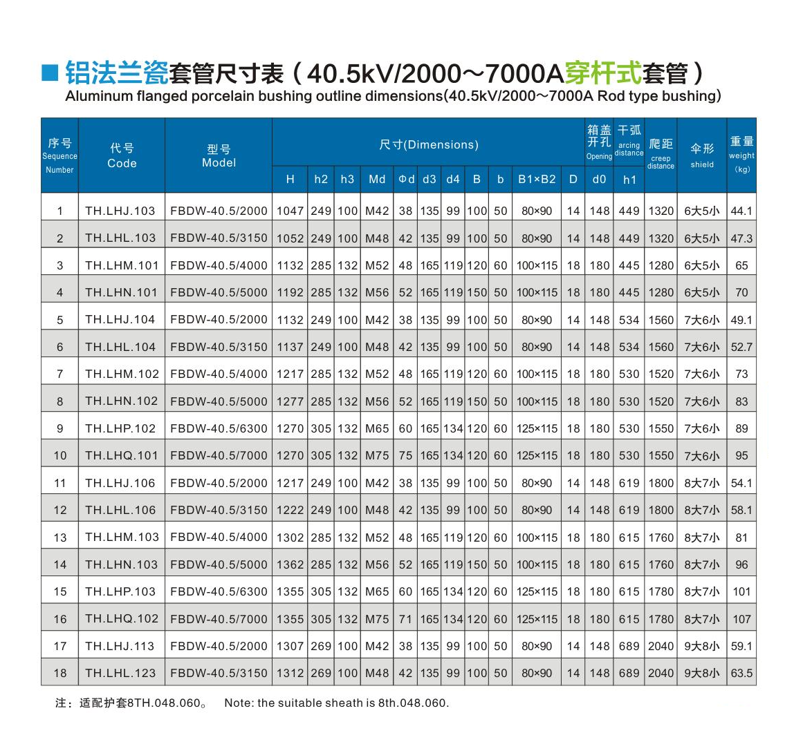鋁法蘭瓷套管40.5kV/2000~7000A穿桿式套管