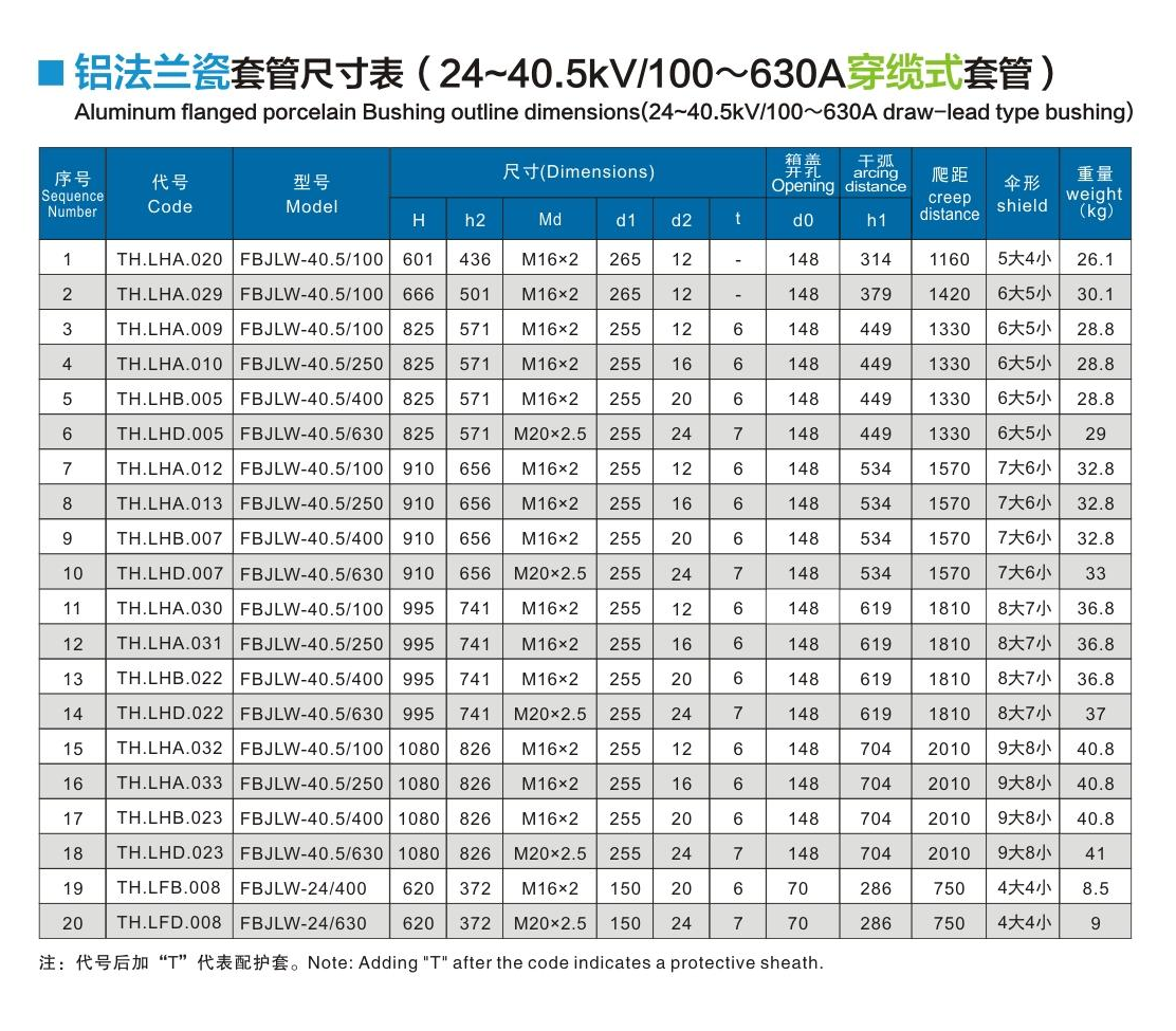 鋁法蘭瓷套管24~40.5kV/100~630A穿纜式套管