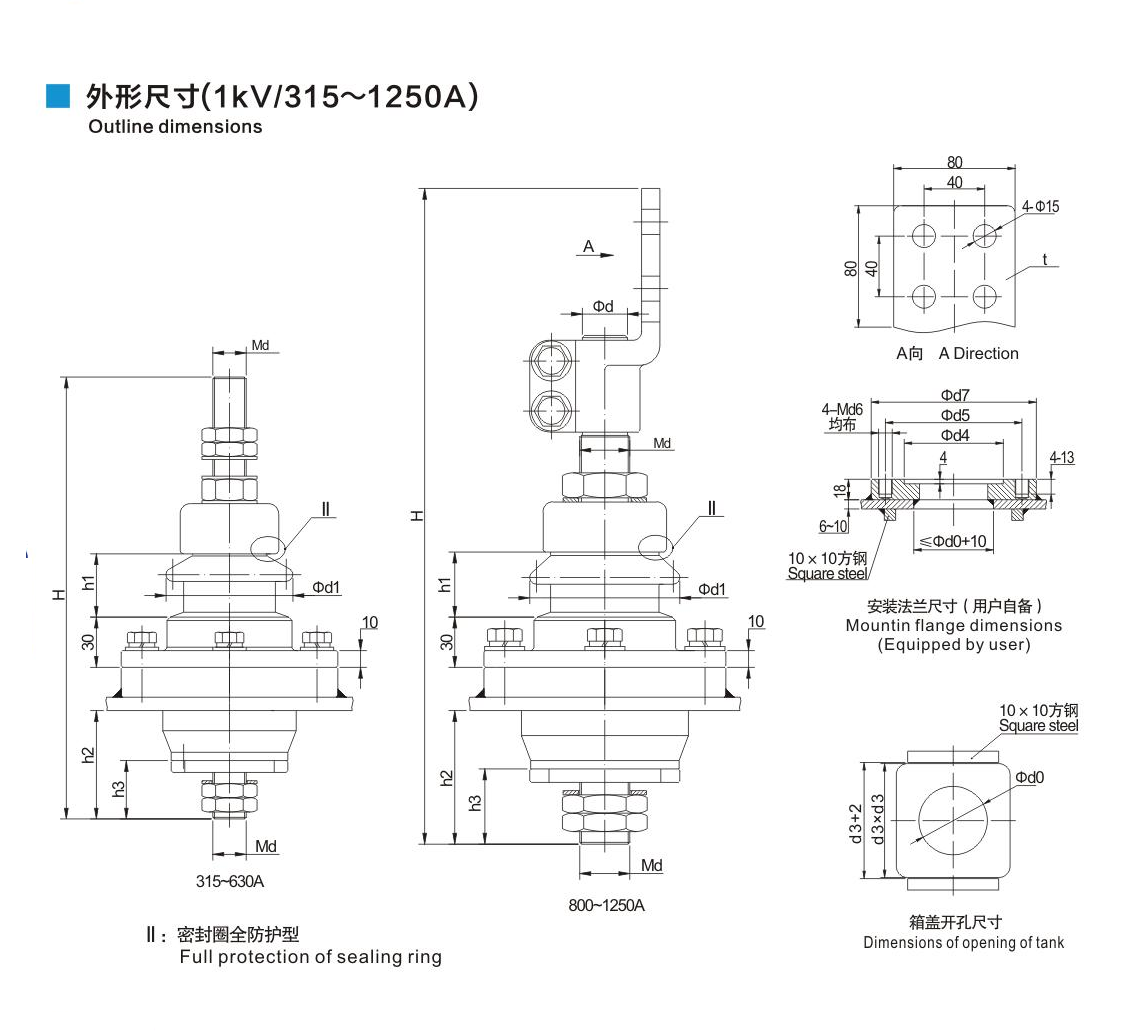 鋁法蘭瓷套管1kV/315~1250A螺紋連接套管