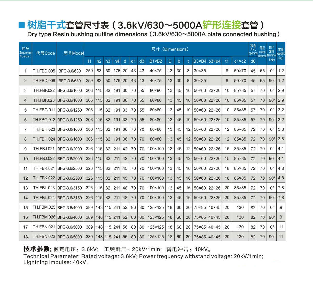 樹(shù)脂干式套管3.6kV/630~5000A鏟形連接套管