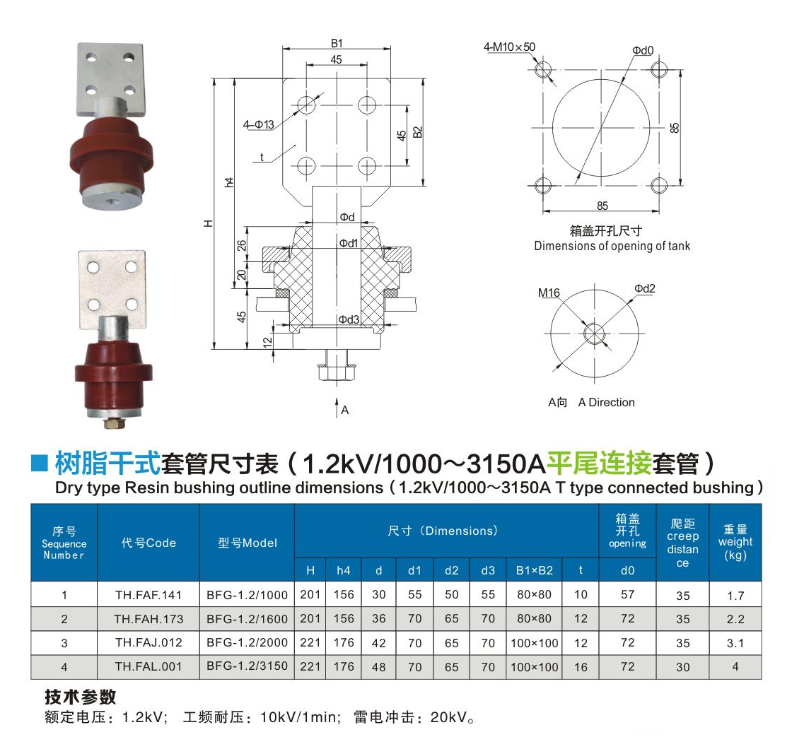樹(shù)脂干式套管1.2kV/1000~3150A平尾連接套管