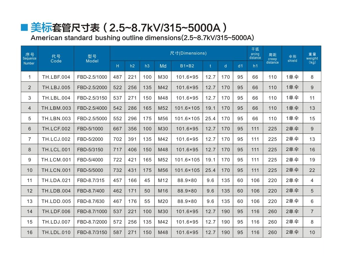 美標(biāo)套管2.5~8.7kV/315~5000A
