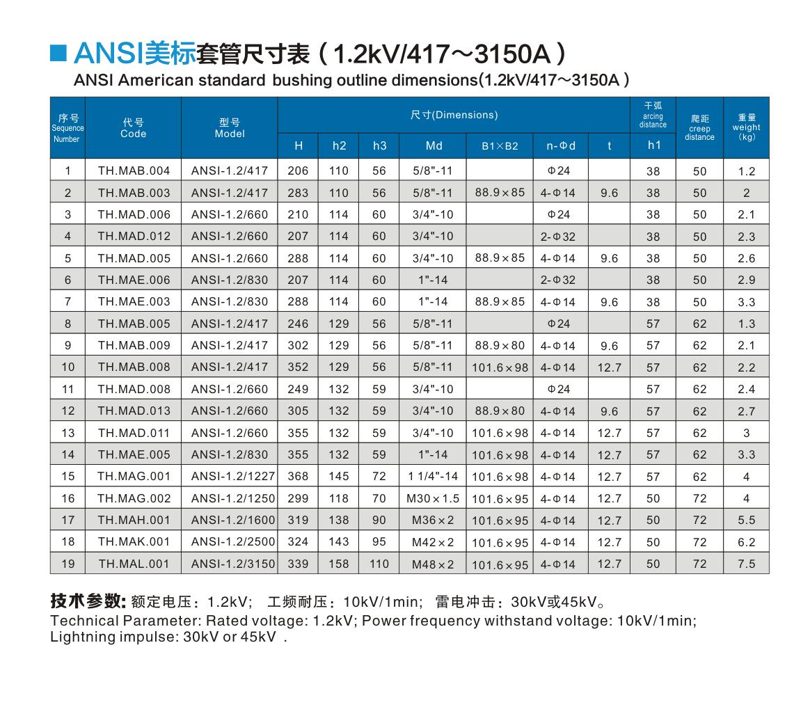 ANSI美標(biāo)套管1.2kV/417~3150A