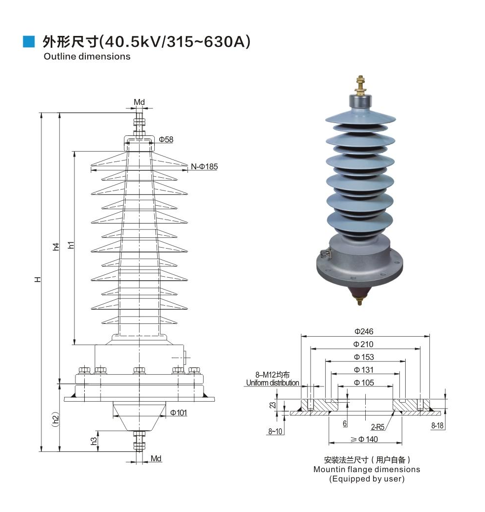 鋁法蘭硅橡膠套管40.5kV/315~630A