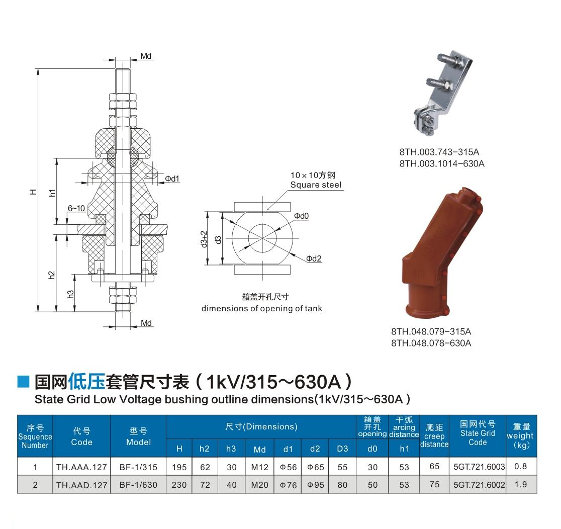 國(guó)網(wǎng)低壓套管1kV/315~630A